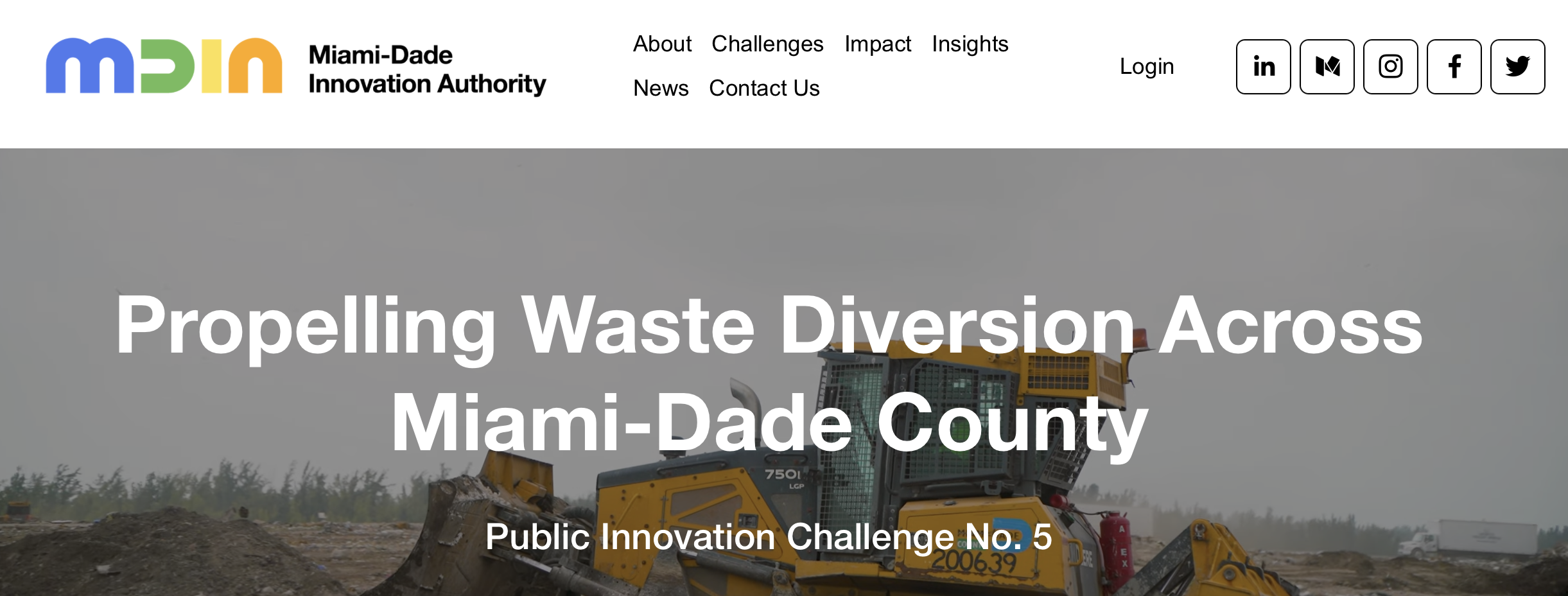 We are pleased to invite you to join Miami-Dade Innovation Authority (MDIA), the Miami-Dade County Department of Solid Waste Management (DSWM), and Miami-Dade County Mayor Daniella Levine Cava for a formal announcement of the winners of MDIA's fifth public innovation challenge.